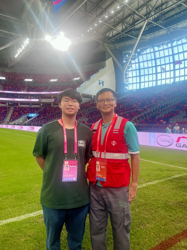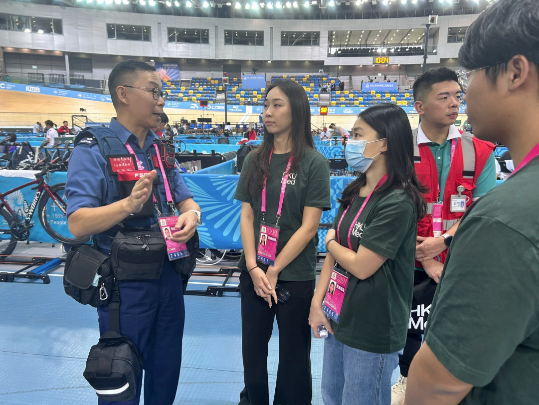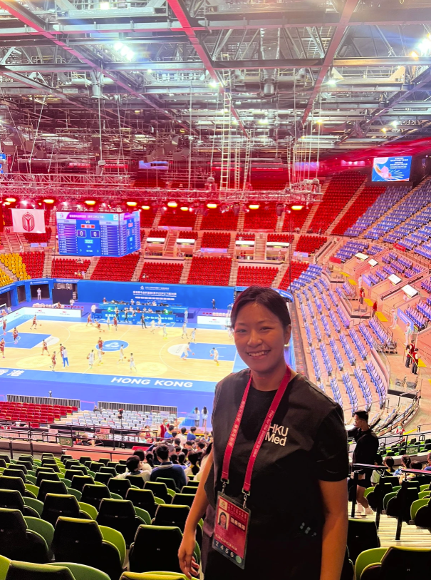 MBBS student Ma Hoi Lam Joyce, reflected, “As a fifth-year medical student, my opportunity to observe the medical team at the 15th National Games in Hong Kong was both enlightening and impactful. I witnessed how integral communication was to the effectiveness of the medical support. The medical staff coordinated efficiently with event organisers, police, and paramedics to ensure a seamless line of communication. From observing their interactions and witnessing their professionalism, I understood that collaboration was crucial for quickly mobilising medical assistance when needed, especially in a crisis environment.” Joyce observed both basketball and track cycling events.